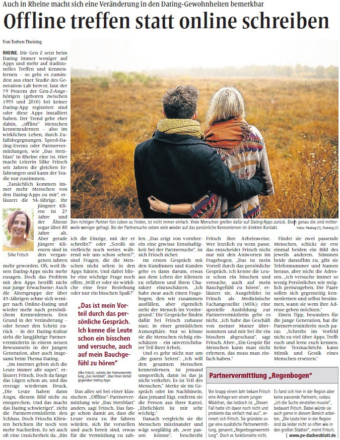 Seit Januar 2009 führt Silke Fritsch erfolgreich die bereits seit 1992 in Rheine bestehende Partnervermittlung „Das Herzblatt“. Am Erfolg ihrer Vermittlung möchte sie auch die Bedürftigen der „Rheiner Tafel“ teilhaben lassen, denn immer mehr Menschen sind überschuldet und somit auf Hilfe angewiesen. Diese Menschen versuchen nach Möglichkeit, mit dem knappen Geld einigermaßen auszukommen. In Rheine benötigen über 6.500 Personen in über 3.400 Haushalten Unterstützung durch Arbeitslosengeld II oder Sozialhilfe, darunter viele Kinder und Jugendliche unter 18 Jahren. Selbst mit Arbeit fällt es Familien mit Kindern schwerer, mit den sinkenden Reallöhnen auszukommen. Deshalb steigen in der Suppenküche und der Kleiderkammer der Caritas die Besucherzahlen. “Bei dieser Spende geht es mir darum, dass dieses Geld unverschuldet in Not geratenen Rheinenser direkt zugute kommt“, machte sie bei ihrer Spendenübergabe deutlich. Für die „Rheiner Tafel“ nahm Stefan Beckmann zusammen mit ehrenamtlichen Helferinnen den symbolischen Scheck über 300 Euro von Silke Fritsch entgegen.